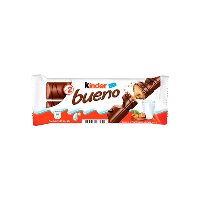 Enjoy the irresistible combination of flavor and texture with Kinder Bueno 43g, a delicious crispy coating filled with a soft and creamy mixture of milk and hazelnuts, coated with the best milk chocolate. In this practical format, the box includes 15 individual packs, perfect to store at home, office or take with you anywhere. Ideal to share or give you a whim at any time of the day, Kinder Well is the perfect choice for chocolate lovers looking for a balance between lightness and sweetness.