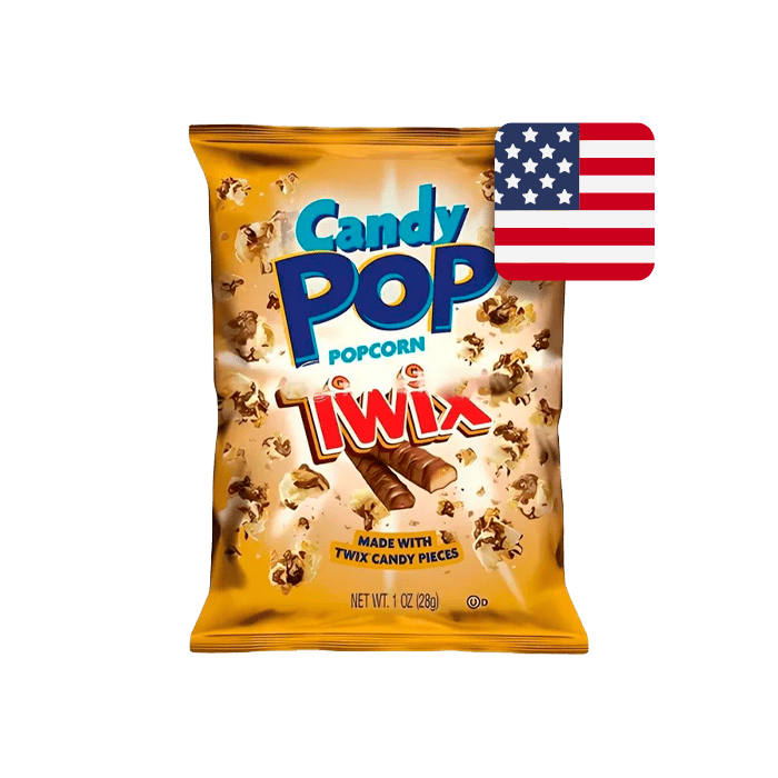 Vente en gros de Candy Pop Popcorn Twix 28g – délicieux pop-corn préparé avec les célèbres barres chocolatées Twix. Une explosion de saveurs à chaque bouchée, idéal pour regarder un film ou partager entre amis.