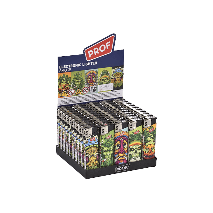 Os Isqueiros Eletrônicos Prof têm um design simples e operação. Eles foram projetados em várias cores e são caracterizados por seu pequeno tamanho. Para usá-lo, basta pressionar o botão para fluir o gás e prenda.Gracias às suas dimensões e peso, é feito para carregá-lo no bolso. Este isqueiro tem um bom preço de qualidade, como eles são bastante econômico e geralmente resistem muito bem os golpes, quedas e até mesmo umidade. É recarregável e o sistema de ignição é elétrico.